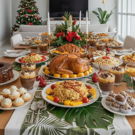 Peru Decorado + Tender + Arroz à Grega + Farofa Rica + Salpicão.